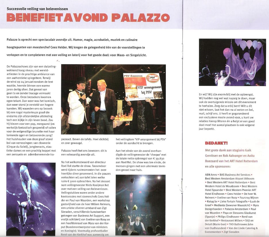 Succesvolle veiling van belevenissen benefietavond Palazzo