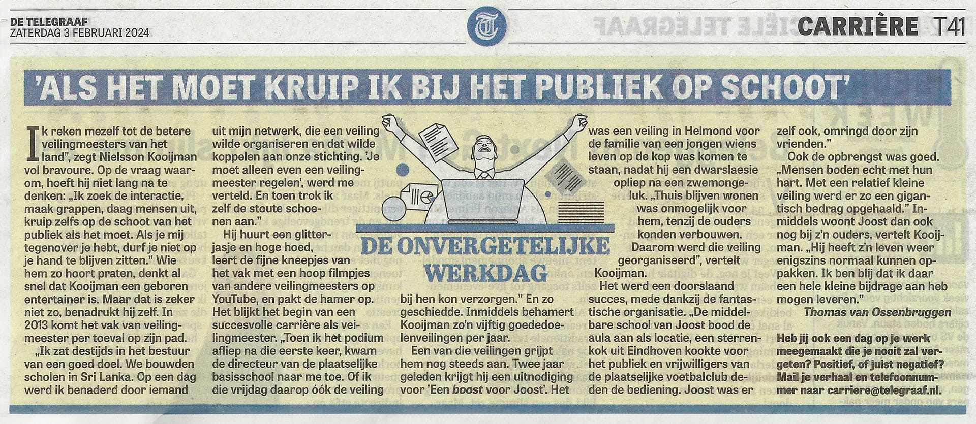 De onvergetelijke werkdag: ’Ik kruip zelfs bij het publiek op schoot als het moet’